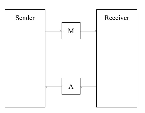 The ABP guarantees reliable transmission by retransmitting lost or corrupted messages, and also ensures that the order of messages is preserved. Each message the sender transmits contains a data part and an additional bit, i.e., a value that is 0 or 1. After transmission, the sender waits for an acknowledgement from the receiver (with the same bit) via A. If no correct acknowledgement arrives, the sender retransmits the message with the same bit. Otherwise, the sender flips the bit and starts transmitting the next message.